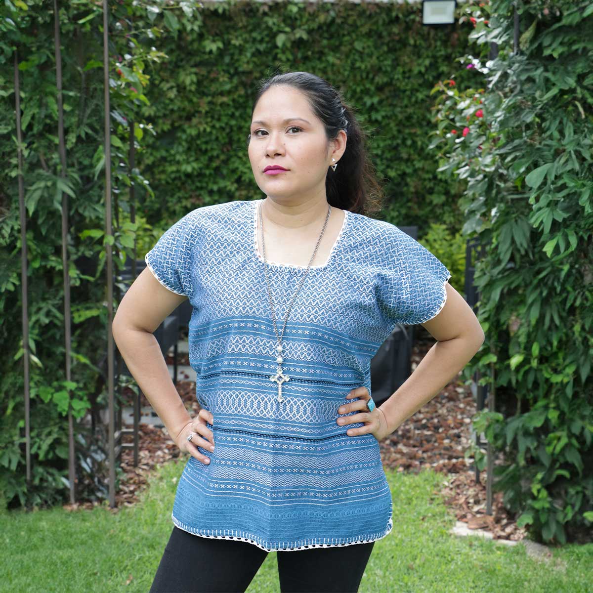Blusa panal terminado con tejido azul
